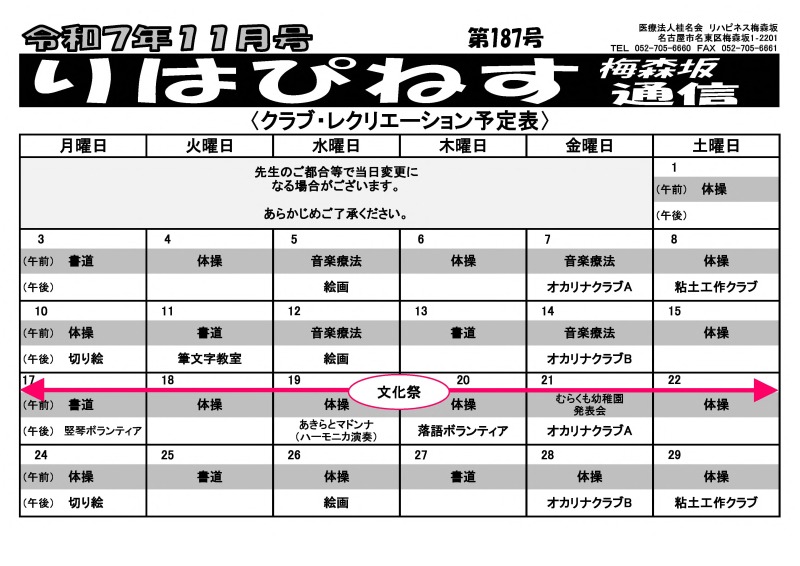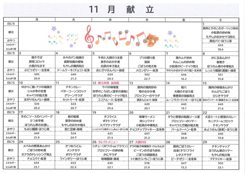 【毎月更新】りはぴねす梅森坂通信/献立表